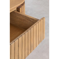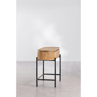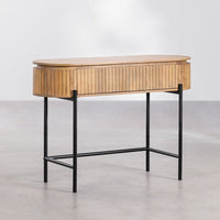 FOVER Pagaminta iš 100 % mango medienos - medžiagos, kuri išsiskiria atsparumu. Jo natūrali apdaila ir apvalios formos suteikia prieškambario apdailai ypatingą ir atnaujintą išvaizdą. Moderniausią akcentą suteikia juodos geležies kojos.