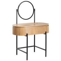 Kosmetinis staliukas pagamintas iš natūralios mango medienos su geležinėmis kojomis ir veidrodžio rėmu. Šios medžiagos suteikia staliukui patvarumą ir ilgaamžiškumą.