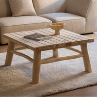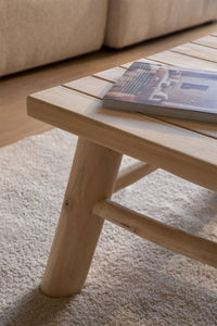 Kvadratinis tikmedžio kavos staliukas NOLKA – tvirtas, elegantiškas, natūrali tekstūra.
