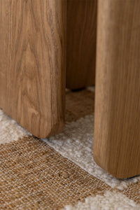 Kvadratinis staliukas GMELUA rudos spalvos – MDF ir uosio faneruotė, minimalistinis dizainas, praktiškas dydis.