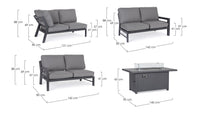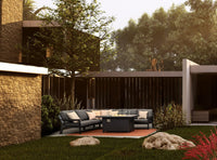HENDRIX CHARCOAL kampinis – tai prabangus lauko baldų komplektas su integruotu centriniu židiniu, skirtas jaukiems vakarams lauke. Komplektą sudaro kampinė sofa ir didelis stalas su stikliniu paviršiumi bei centriniu dujiniu židiniu. Modernus dizainas, patogios pagalvėlės ir kokybiškos medžiagos – visa tai, ko reikia poilsiui lauke su stiliaus pojūčiu.