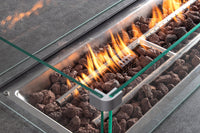 Aliuminio konstrukcija, milteliniu būdu dažyta (poliesteris); nuimami užvalkalai iš 100 % poliesterio, atsparaus vandeniui; stalas su 8 mm stiklo viršumi ir keramikos efektu, integruotu dujiniu židiniu, stiklo apsauga, nerūdijančio plieno degikliu (#304), aliuminio dangteliu. Komplekte yra žarijų akmenys ir stalo uždangalas iš 100 % poliesterio (180 g/m²) su poliuretano danga. Dujų balionas, žarna, reguliatorius ir mygtuko baterija (1xAAA) nepridedami.