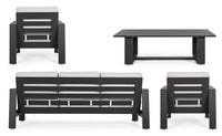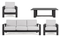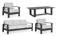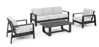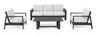 Stilingas ir funkcionalus 4 dalių lauko baldų komplektas BALTIC CHARCOAL. Tvirtas aliuminio rėmas, patogios sėdimosios vietos su vandeniui atspariomis pagalvėlėmis leis mėgautis poilsiu gryname ore. Komplekte – trivietė sofa, du foteliai ir erdvus kavos staliukas, sukurtas komfortiškam laisvalaikiui sode ar terasoje.