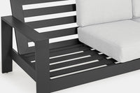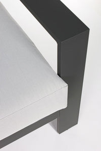 Milteliniu būdu dažytas aliuminio rėmas (poliesteris); sėdimosios ir nugarinės pagalvėlės su nuimamais užvalkalais iš olefin audinio (100 % polipropilenas); reguliuojamos kojelės; nerūdijančio plieno varžtai; reikia surinkti.