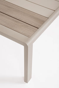 Aliuminio rėmas, milteliniu būdu dažytas (poliesteris); porankiai ir stalviršis su polywood intarpais; nuimamos pagalvėlės iš spun poliesterio, atsparaus vandeniui; staliuko kojos surenkamos rankiniu būdu.