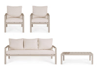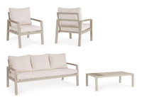 ELNA PEYOTE – šviesaus dizaino lauko baldų komplektas, puikiai tinkantis terasai ar sodui. Komplekte yra trivietė sofa, du patogūs foteliai ir staliukas su polywood intarpais. Lengva konstrukcija ir minkštos pagalvėlės suteikia komforto pojūtį. Staliuko kojas reikia surinkti.
