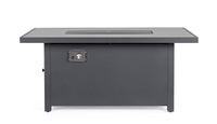 Aliuminio konstrukcija, milteliniu būdu dažyta (poliesteris); nuimami pagalvių užvalkalai iš 100 % poliesterio, atsparūs vandeniui; stalas su 8 mm storio stiklo paviršiumi ir centriniu dujiniu židiniu; grūdinto stiklo židinio gaubtas, nerūdijančio plieno degiklis (#304), aliuminio dangtis, žarijų akmenys. Komplekte nėra dujų baliono, dujų žarnos, reguliatoriaus ir mygtuko baterijos (1xAAA). Į komplektą įeina stalo uždangalas iš poliesterio su poliuretano danga (180 g/m²), atspari vandeniui ir UV spinduliams.