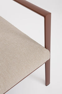 Milteliniu būdu dažytas aliuminio rėmas (poliesteris); sėdimoji ir nugaros dalis iš tekstileno 1x1; nuimamos olefino pagalvėlės (100 % polipropilenas); nerūdijančio plieno varžtai.