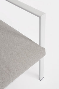 Milteliniu būdu dažytas aliuminio rėmas (poliesteris); sėdimoji ir nugaros dalis iš tekstileno 1x1; nuimamos olefino pagalvėlės (100 % polipropilenas); nerūdijančio plieno varžtai.