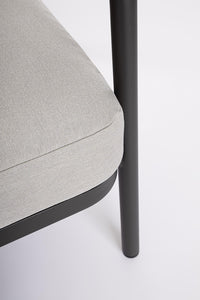Milteliniu būdu dažytas aliuminio rėmas (poliesteris); olefino virvė (100 % polipropilenas); sinteruoto akmens stalviršis (11 mm storio); nuimamos olefino pagalvėlės (100 % polipropilenas); nerūdijančio plieno varžtai.