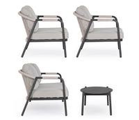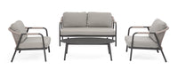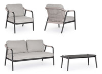 Lauko baldų komplektas MIRAVET ANTHR/KHAKI – tai elegantiškas sprendimas lauko erdvėms. Tamsus rėmas derinamas su šviesiai rusvomis virvėmis ir patogiomis, drėgmei atspariomis pagalvėlėmis. Komplektą sudaro trivietė sofa, du foteliai ir kavos staliukas su sinteruoto akmens stalviršiu. Kojas reikia surinkti.