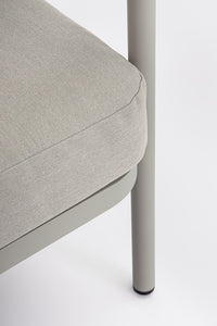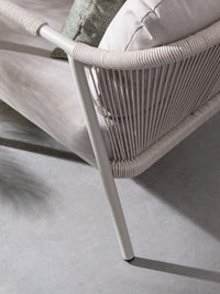 Milteliniu būdu dažytas aliuminio rėmas (poliesteris); olefino virvė (100 % polipropilenas); sinteruoto akmens stalviršis (11 mm storio); nuimamos olefino pagalvėlės (100 % polipropilenas); nerūdijančio plieno varžtai.