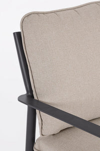 Milteliniu būdu dažytas aliuminio rėmas (poliesteris); nuimamos sėdimosios ir nugarinės pagalvėlės iš olefino (100 % polipropilenas); nerūdijančio plieno varžtai; kavos staliuko kojas reikia surinkti.