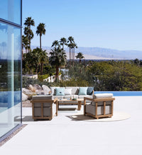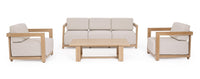 Išskirtinis komfortas ir ilgaamžiškumas – tai 4 dalių lauko baldų komplektas THESEUS NATURAL. Tvirtas aliuminio rėmas su natūralaus medžio efekto apdaila, minkštos, greitai džiūstančios pagalvėlės su nuimamais užvalkalais ir plačios sėdimosios vietos leis mėgautis laiku lauke be rūpesčių. Komplekte: trivietė sofa, du foteliai ir erdvus kavos staliukas.