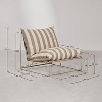 COSMO smėlio ir žalios spalvos fotelis sofai pasižymi minimalistiniu dizainu ir tvirta plieno konstrukcija. Pagalvės, užpildytos smulkintomis putomis, suteikia minkštumo, o vandeniui atsparūs užvalkalai užtikrina paprastą priežiūrą.