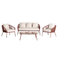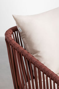Modernus 4 dalių lauko baldų komplektas ARHIZA, su dviviete sofa, dviem foteliais ir kavos staliuku. Aliuminio konstrukcija ir pintos virvės sukuria lengvą ir elegantišką formą. Puikiai tinka terasai ar sodui, kur ieškoma tiek stiliaus, tiek funkcionalumo. Grūdinto stiklo stalviršis – praktiškas ir stilingas pasirinkimas.