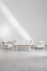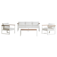 Lauko baldų komplektas AUBRIL, mokos rudos spalvos, išsiskiria šiltais medienos atspalviais ir moderniu siluetu. Trivietė sofa, du foteliai ir staliukas – viskas, ko reikia jaukiam poilsiui ar draugų vakarui terasoje. Derinant aliuminį su natūralia akacijos mediena, sukurta harmoninga, stilinga išvaizda, tinkanti bet kokiam lauko interjerui. Komplektas atsparus oro sąlygoms ir pasižymi lengva priežiūra.