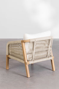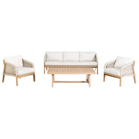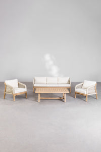 Lauko baldų komplektas DUBAI sukurtas komfortui ir elegancijai. Komplektą sudaro 3 vietų sofa, 2 foteliai ir erdvus kavos staliukas. Kiekvienas baldas pagamintas iš akacijos medienos su šukuotu paviršiumi, kuris pabrėžia natūralų grožį. Poliropileno pynimas porankiuose suteikia unikalų stilių, o nuimamos pagalvėlės su minkštu užpildu užtikrina maksimalų komfortą. Tai išskirtinis komplektas tiems, kurie nori susikurti modernią ir patogią lauko zoną.