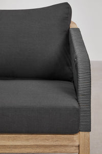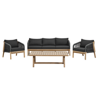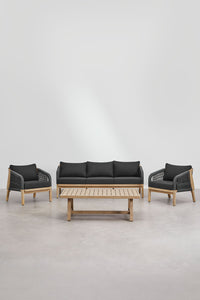 Lauko baldų komplektas DUBAI sukurtas komfortui ir elegancijai. Komplektą sudaro 3 vietų sofa, 2 foteliai ir erdvus kavos staliukas. Kiekvienas baldas pagamintas iš akacijos medienos su šukuotu paviršiumi, kuris pabrėžia natūralų grožį. Poliropileno pynimas porankiuose suteikia unikalų stilių, o nuimamos pagalvėlės su minkštu užpildu užtikrina maksimalų komfortą. Tai išskirtinis komplektas tiems, kurie nori susikurti modernią ir patogią lauko zoną.