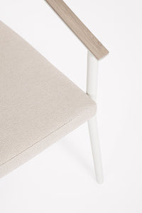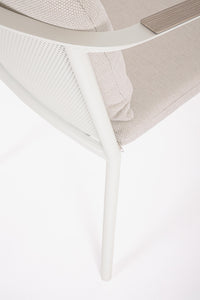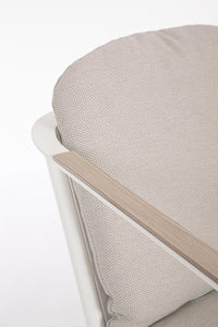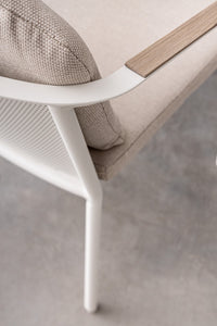 Aliuminio konstrukcija, dengta poliesterio milteliniu būdu. Porankiai ir stalviršis – aliuminis su medžio imitacijos padengimu. Nuimamos sėdimosios ir nugarinės pagalvėlės iš olefino audinio (100% polipropilenas), atsparios vandeniui. Nerūdijančio plieno varžtai. Kėdės sudedamos. Stalo kojas reikia surinkti.