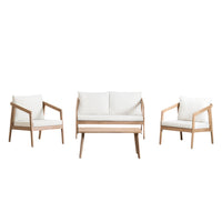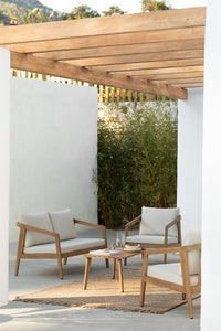 Modernus ir jaukus lauko baldų komplektas KAELA – tai 2 vietų sofa, 2 patogūs foteliai ir derantis kavos staliukas. Baldai pagaminti iš natūralios akacijos medienos, kuri išsiskiria tvirtumu bei atsparumu išoriniams veiksniams. Komplektas idealiai tinka tiek terasai, tiek sodui ar poilsio zonai. Pagalvėlės yra su nuimamais, vandeniui atspariais užvalkalais, sėdimoji dalis pagaminta iš polipropileno pynimo, užpildyta elastingu porolonu ir pluoštu, todėl sėdėti itin komfortiška.