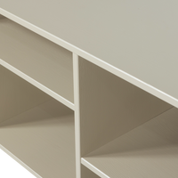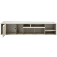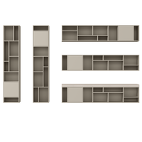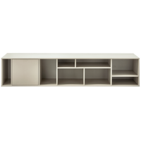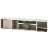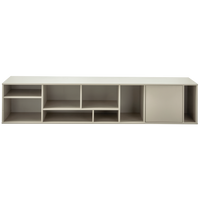 Sieninė spintelė LETTERBA(N)K XL, miglos pilka – žaisminga, daugiafunkcė su įvairių dydžių atvirais skyriais ir viena uždara niša (atidarymas prisilietimu); galima montuoti horizontaliai arba vertikaliai.
