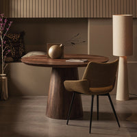 Minimalistinio dizaino grindinė lempa, visiškai apmušta minkštu bouclé audiniu, kuris sukuria jaukią atmosferą ir švelniai išsklaido šviesą iš dviejų šviesos taškų viršuje ir apačioje.