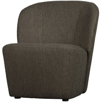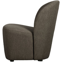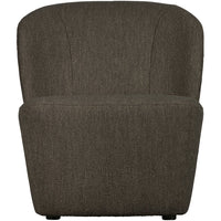Fotelis LOFTY bouclé rudas – elegantiškas ir patogus, su apvaliomis formomis, minkšta atrama ir draugišku dizainu. Tinka moderniai svetainei.