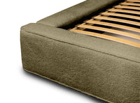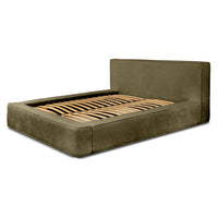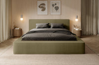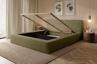 Miegamojo lova BERNAND, Euphoria 11 – alyvuogių žalios spalvos lova su talpia dėže. Suteikia erdvei ramybės, natūralumo ir išskirtinumo.