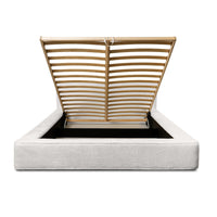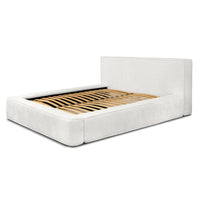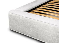 Miegamojo lova BERNAND, Euphoria 01 – elegantiška kreminės spalvos lova su talpia dėže ir dujiniais pakėlėjais. Švelni buklės tekstūra suteikia šilumos ir jaukumo bet kokiai erdvei.
