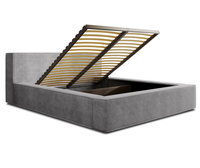 Miegamojo lova BERNAND, Macau Ash – šviesiai pilka lova su švelniu blizgesiu. Subtili spalva ir malonus audinys suteikia miegamajam ramybės ir elegancijos.