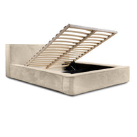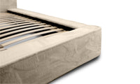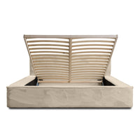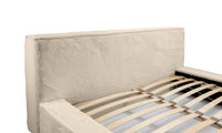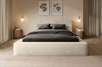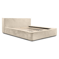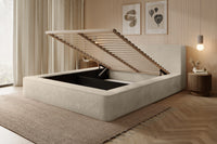Miegamojo lova JAMES, Lapit 29 – prabangi smėlinės spalvos lova. Audinys „Lapit“ išsiskiria švelniu paviršiumi ir dideliu atsparumu dėvėjimuisi. Lova turi dujinį pakelimo mechanizmą ir talpią dėžę – funkcionalus sprendimas šiuolaikiškam miegamajam.