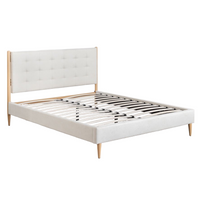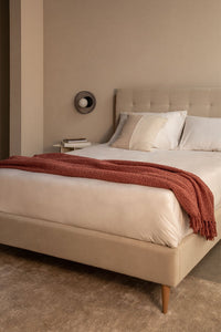 Tapiceruota lova SEMIRA – elegantiška ir švelnaus tono lova su kapitonuotu galvūgaliu, suteikianti sielos ramybę ir modernų dizaino akcentą interjere.