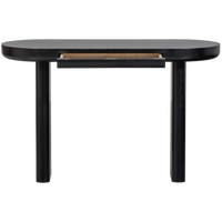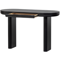 Rašomasis stalas MAEL, juodas – tvirtas, kompaktiškas stalas su ryškiu dizainu; masyvios, grubiai profiliuotos kojos ir patogi stalčiaus niša kasdieniam naudojimui.