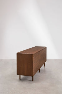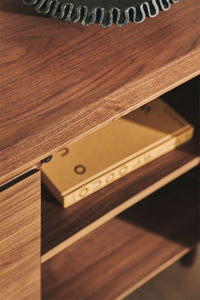 Medinė komoda TINVUTIA – talpus ir stilingas baldas svetainei ar koridoriui. Trys atverčiamos durys su tylaus uždarymo sistema slepia kasdienius daiktus, viduje – trys lentynos. Medinės kojelės su apsauginėmis pagalvėlėmis užtikrina stabilumą ir saugo grindis.