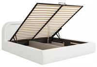 Miegamojo lova BELLEVUE, Raven 21 – moderni lova su apvaliu galvūgaliu. Kreminis šenilinis audinys suteikia šviesumo ir jaukumo, o patalynės konteineris bei metalinis stelažas užtikrina ilgaamžiškumą.