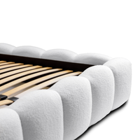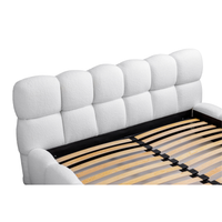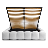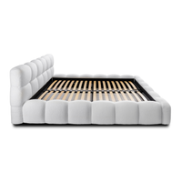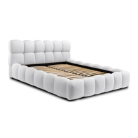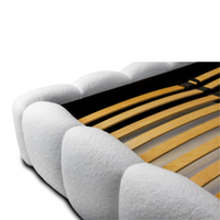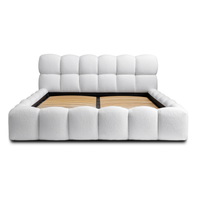 Lova JASMIJA su balta quelle audiniu – aptraukta audiniu QUELLE 01. Aukštas galvūgalis su dekoratyviniais dygsniais suteikia lovai išskirtinumo, o integruota patalynės dėžė padeda patogiai laikyti tekstilę ir palaikyti tvarką miegamajame. Čiužinys į komplektą neįeina.