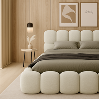 Miegamojo lova JASMIJA, smėlinės spalvos boucle