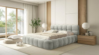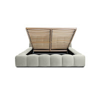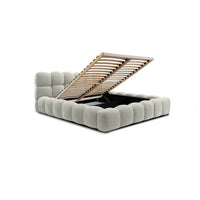 Lova JASMIJA su toffee boston audiniu – aptraukta audiniu BOSTON toffee. Aukštas galvūgalis su dekoratyviniais dygsniais suteikia lovai išskirtinumo, o integruota patalynės dėžė padeda patogiai laikyti tekstilę ir palaikyti tvarką miegamajame. Čiužinys į komplektą neįeina.