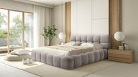 Lova JASMIJA su trufa boston audiniu – aptraukta audiniu BOSTON trufa. Aukštas galvūgalis su dekoratyviniais dygsniais suteikia lovai išskirtinumo, o integruota patalynės dėžė padeda patogiai laikyti tekstilę ir palaikyti tvarką miegamajame. Čiužinys į komplektą neįeina.