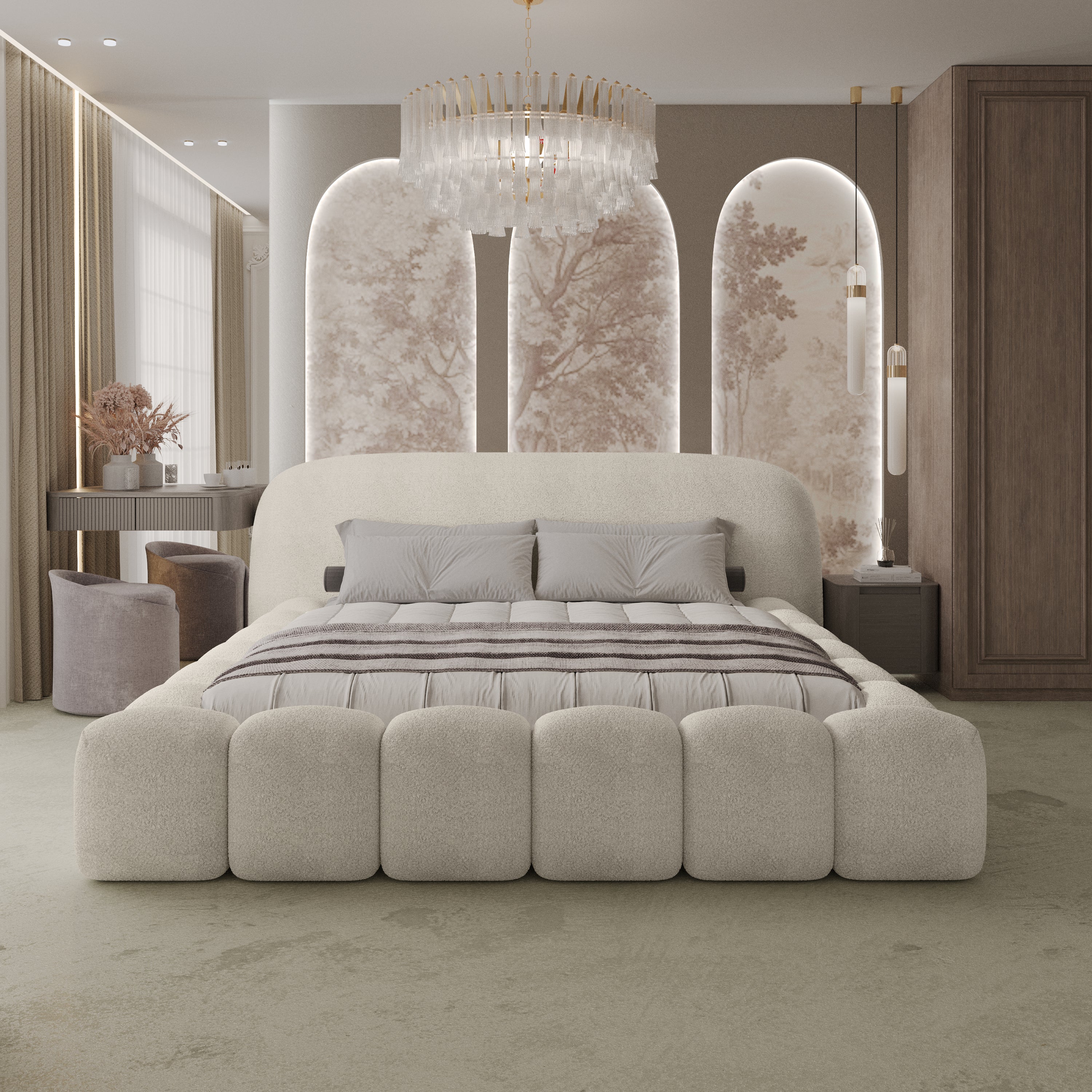 Lova ORLANDO QUELLE 03 – šiuolaikiško dizaino baldas, kuriame dera švelnumas ir prabanga. Balta boucle spalva suteikia erdvei šviesos ir elegancijos, o apvalinti lovos kraštai pabrėžia jos minkštumą. Tai lova, kuri ne tik atrodo stulbinančiai, bet ir užtikrina maksimalų komfortą kasdien. Švelnus boucle audinys suteikia šilumos jausmą, o jo subtili pėtelės struktūra sukuria unikalią faktūrą, kuri puošia interjerą.