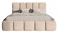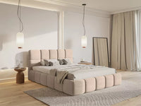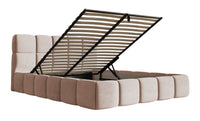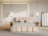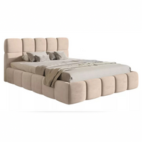 Miegamojo lova SOFTY, Piano 03 – elegantiška lova su galvūgaliu iš užapvalintų kvadratų, dujiniais pakėlėjais ir talpia patalynės dėže. Bežinis hidrofobinis veliūras lengvai valomas ir dailiai atspindi šviesą, o metalinis stelažas garantuoja tvirtą atramą.