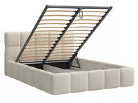 Miegamojo lova SOFTY, Puente 03 – moderni lova su užapvalintu galvūgaliu ir talpia patalynės dėže. Šviesiai smėlinis veliūras su vandeniui atsparia, lengvai valoma technologija suteikia jaukumo ir palengvina priežiūrą.