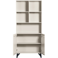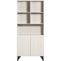 Spinta MILLER, 2 durys, smėlinė pilka – moderni spinta iš pušies medienos su tvarkingomis linijomis. Priklauso MILLER kolekcijai. Stilinga smėlinė spalva ir juodos metalinės kojelės suteikia kontrasto bei šiuolaikišką išvaizdą. Spinta turi atvirą lentyną ir uždaras erdves daiktams laikyti.