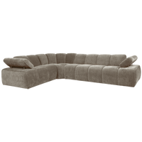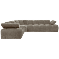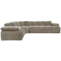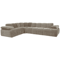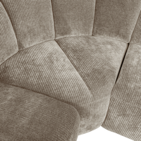 Patogi ir erdvi Mojo kampinė sofa su kairiuoju kampu. Dėl savo plataus dizaino ir reguliuojamų porankių ji suteiks maksimalų komfortą ir lankstumą. Tamsaus smėlio atspalvio Rib Fabric audinys sukuria modernų įvaizdį.