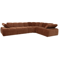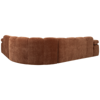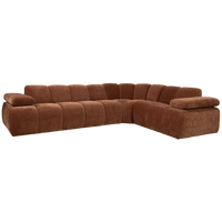 Stilinga ir funkcionali Mojo kampinė sofa su reguliuojamais porankiais. Rust Brown gofruotas audinys suteikia prabangos, o platūs matmenys garantuoja erdvę ir komfortą.