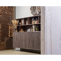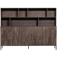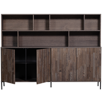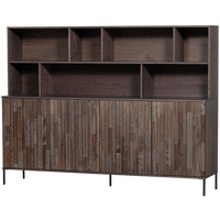 Elegantiška sieninė spintelė NEW GRAVURE – tai išskirtinis baldas, papildantis to paties pavadinimo komodą. Spintelė dengta espresso spalvos uosio faneruotėmis, turi keturias reljefines dureles ir juodos spalvos vidaus apdailą. Joje rasite daugybę vietos daiktams, o atviros lentynos puikiai tiks dekoratyviems akcentams.