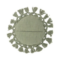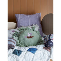 Pagalvėlės ‚Elinna‘ apvali forma su dideliais kutais suteikia smagumo ir įmantrumo, o žalia spalva ir siuvinėtas paukštis suteikia jai žavingą charakterį. Pagamintas iš medvilnės, minkštas ir jaukus, todėl puikiai tinka vaikų kambariui.