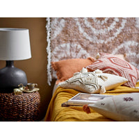 Pagalvėlė ‚Feluka‘ pagaminta iš medvilnės ir lino mišinio. Raudonai rudas atspalvis, derinamas su dvigubais kutais ir spausdintu raštu su siuvinėtomis detalėmis, suteikia dizainui sodrios tekstūros.
