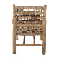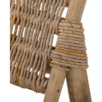 Poilsio fotelis RUTHY – unikalus ir patogus baldas, pagamintas iš natūralaus tikmedžio ir susuktų bananų lapų. Šis fotelis turi daug gražių detalių ir suteikia minkštą, rustic stiliaus išvaizdą, kuri puikiai papildo bet kurį interjerą. Jo išskirtinis dizainas ir komfortas leis jums ilgai mėgautis poilsiu, kad net nenorėtumėte atsistoti.